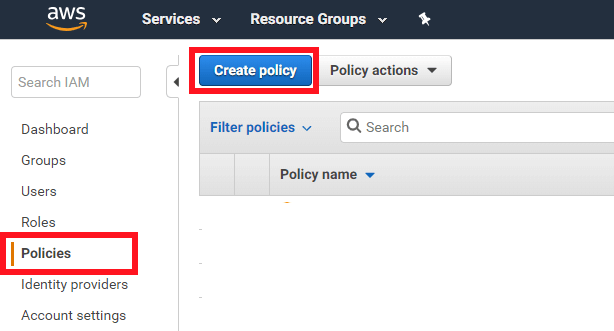 Klicken Sie unter „Policies“ auf „Create policy“.