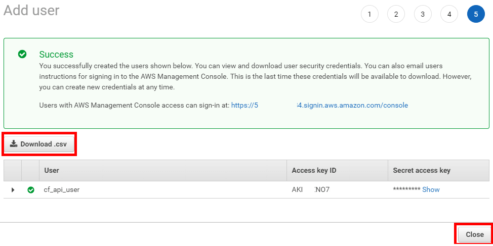 Schritt 5: Unbedingt die Anmeldeinformationen für den neuen Benutzer herunterladen und an einem sicheren Ort speichern.