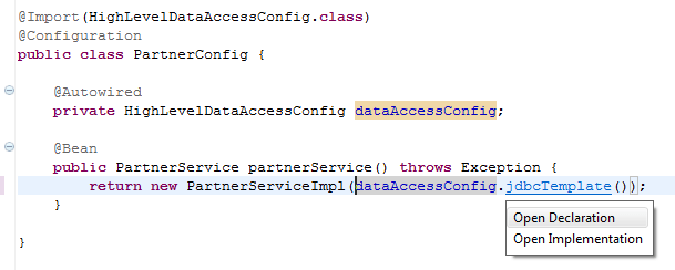10 return new PartnerServiceImpl(dataAccessConfig.jdbcTemplate());