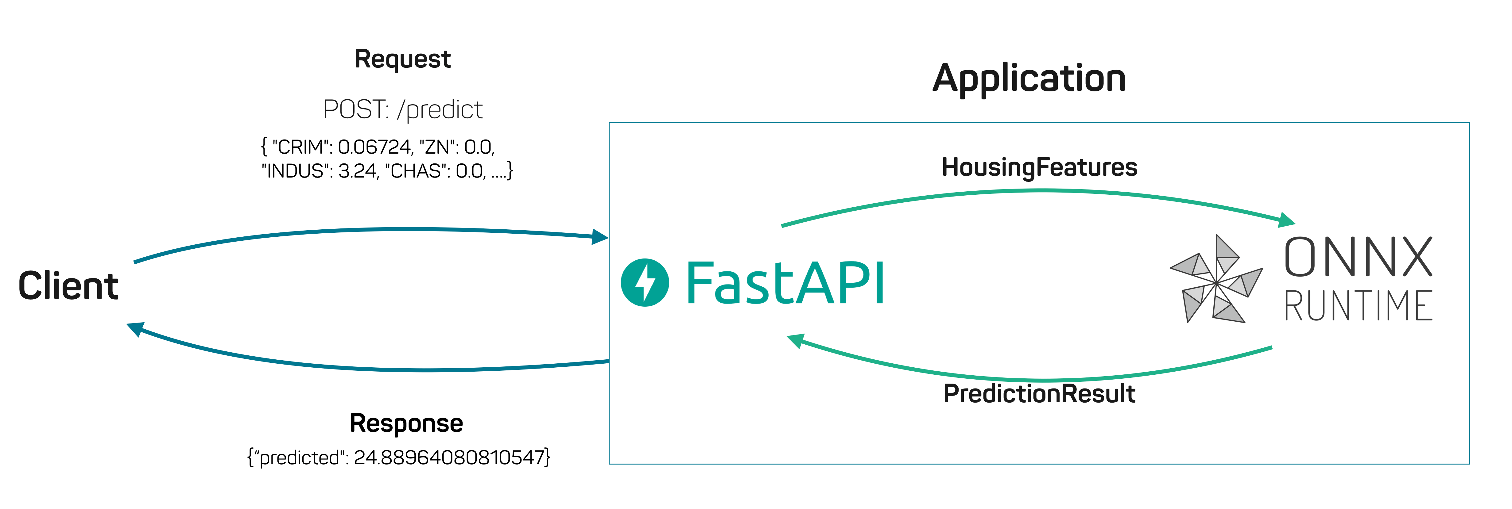 Zunächst wird eine lineare Regression mithilfe von scikit-learn trainiert und in den Modellstandard ONNX konvertiert. Anschließend wird das Modell mit der Inference Engine ONNX Runtime und FastAPI als REST API zur Verfügung gestellt. Bei FastAPI handelt es sich um ein Web-Framework für Python, um Schnittstellen effizient zu entwickeln.