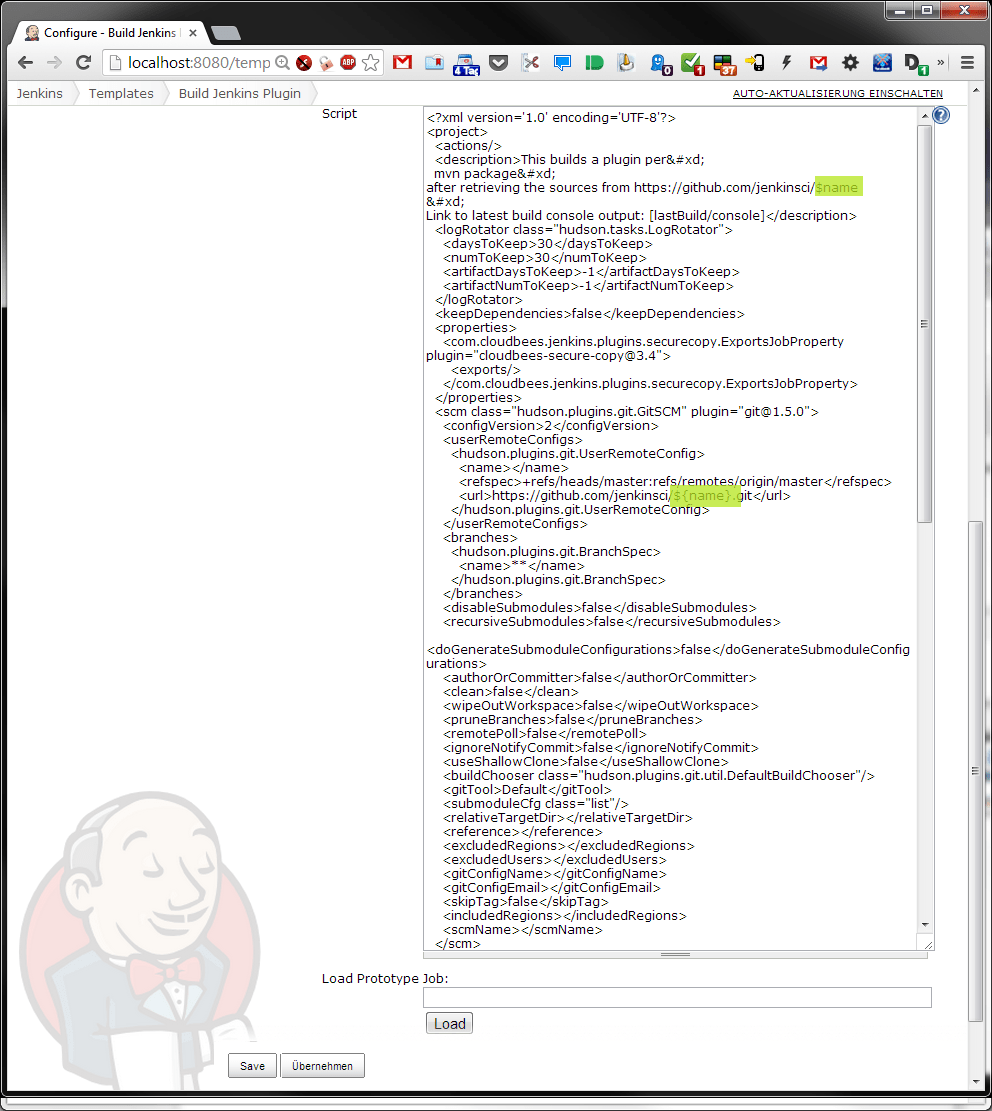 Oft gibt es gleichartige Jobs für ähnliche Projekte, die sich im wesentlichen nur durch einige Parameter wie Projektname und Pfad ins Repository unterscheiden. Ein typisches Beispiel sind die Build-Jobs aller Jenkins Plugins.