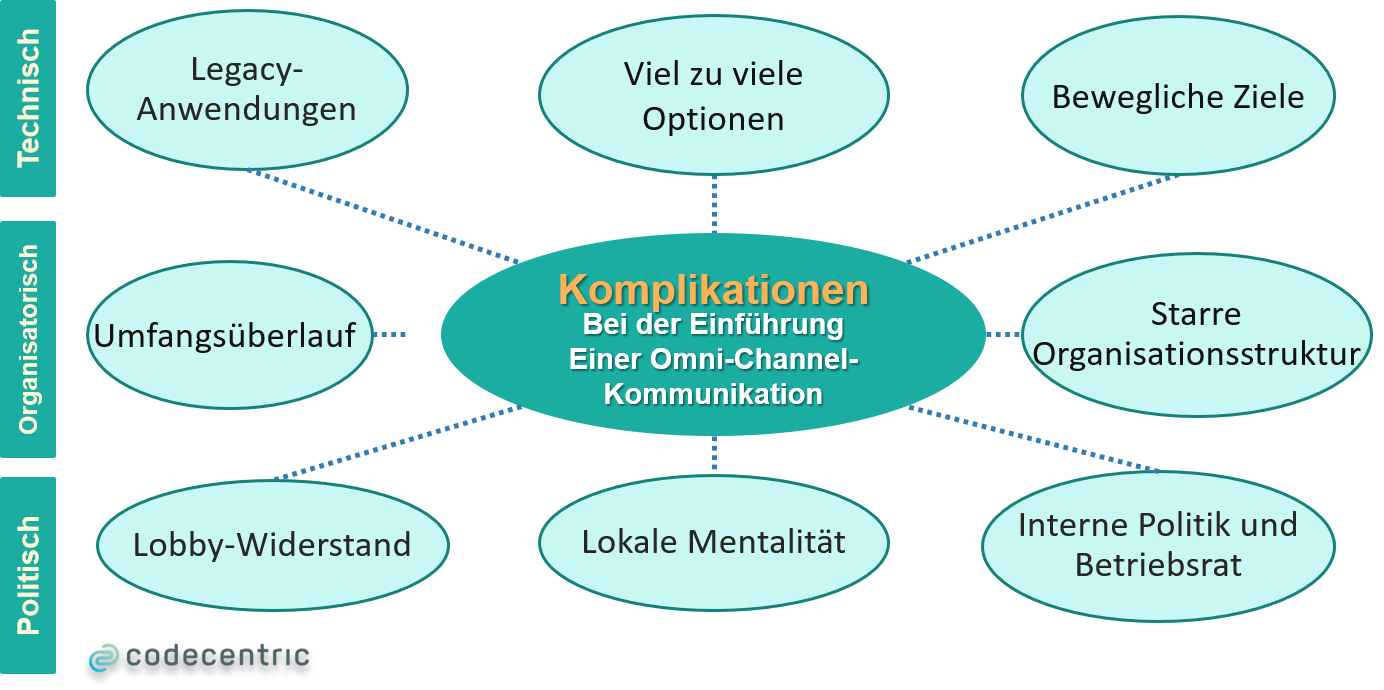 Eine Unternehmensarchitektur sollte dynamisch, transparent und erweiterbar sein, wenn sie mit neuen Technologien oder Geschäftsmöglichkeiten konfrontiert wird. Nur so kann man die Integrität und Skalierbarkeit eines Systems sicherstellen. Das Aufzwingen einer Lösung um der Omni-Channel-Kommunikation willen in einer komplexen IT-Landschaft erfordert nicht nur Änderungen der bestehenden Schnittstellen und des Datenflusses, sondern auch eine anfängliche Bereinigung und Austausch der alten Systeme und Schnittstellen.
