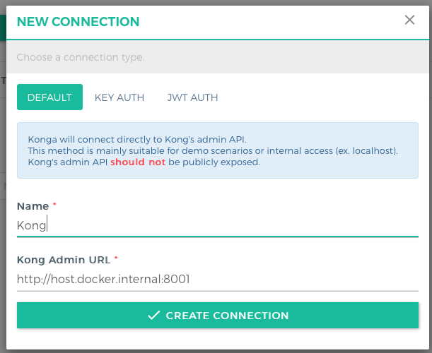 Nun muss noch eine Verbindung zum Kong API Gateway hergestellt werden.