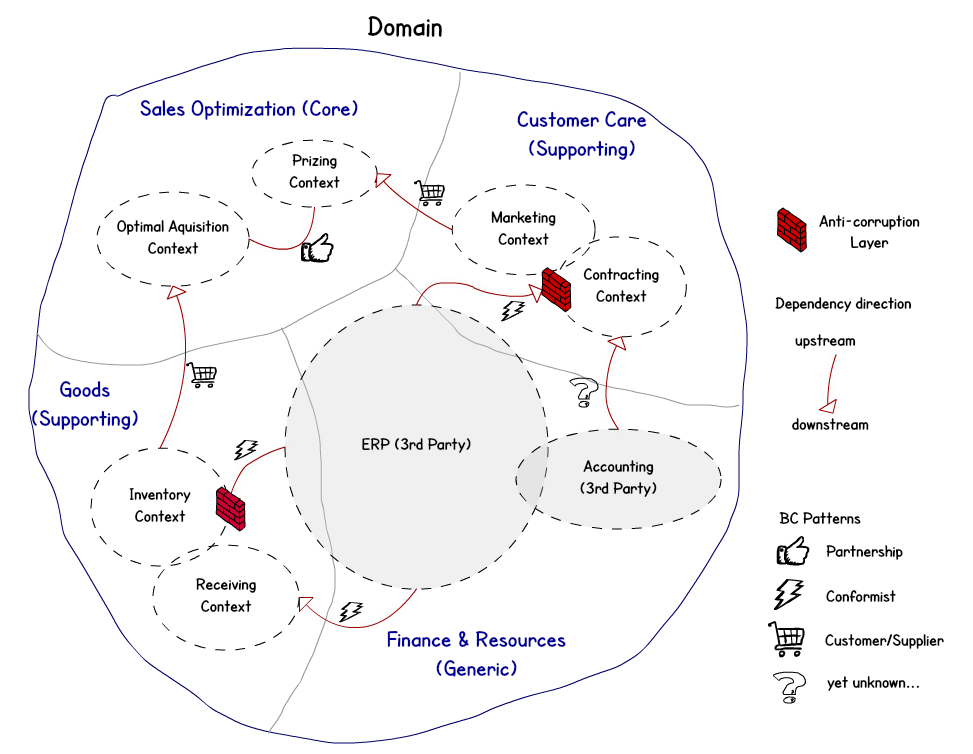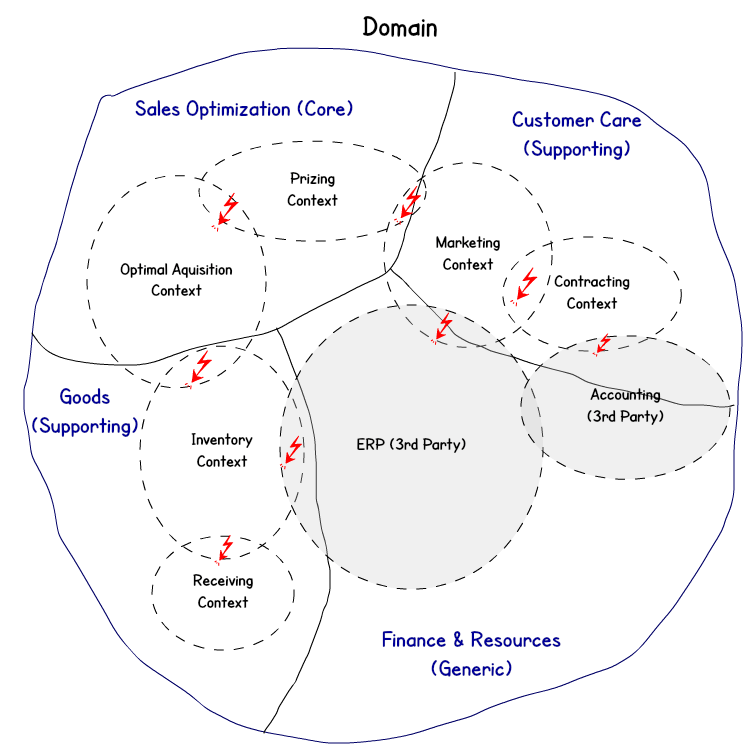 Zweitens lässt sich nicht jede Subdomäne bzw. BC agil transformieren oder der Aufwand rechtfertigt nicht den Nutzen. Weniger, weil es nicht methodisch oder technisch möglich wäre, sondern vielmehr weil Teile der Organisation, die einen Einfluss auf die Subdomäne haben, nicht die entsprechenden Voraussetzungen oder Motivationen haben, dies zu unterstützen. Oder auch nicht wollen.