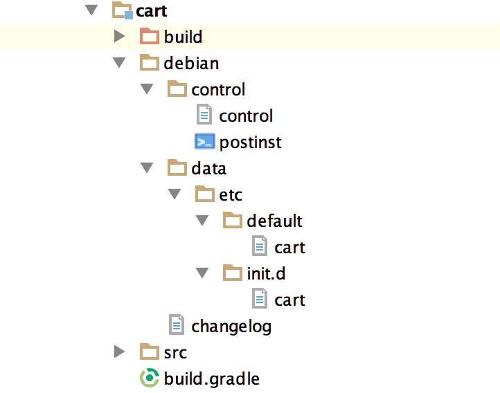 1apply plugin: 'spring-boot' 2apply plugin: 'pkg-debian' 3 4.... 5 6mainClassName = "io.github.zutherb.appstash.shop.service.cart.Boot" 7def debName = "cart" 8 9task prepareDeb { 10 dependsOn installApp 11 12 copy { 13 from "${buildDir}/install/" 14 into "${buildDir}/debian-data/usr/share/shop/" 15 } 16} 17 18debian { 19 packagename = "cart-service" 20 controlDirectory = "${projectDir}/debian/control" 21 changelogFile = "${projectDir}/debian/changelog" 22 outputFile = "${buildDir}/debian/${debName}_${version}.deb" 23 24 data { 25 dir { 26 name = "${projectDir}/debian/data" 27 exclusions = ["**/.DS_Store", "changelog"] 28 } 29 dir { 30 name = "${buildDir}/debian-data/" 31 exclusions = ["**/.DS_Store"] 32 } 33 } 34}