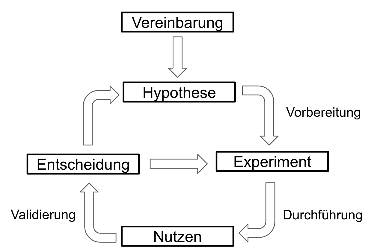 An die Stelle eines festen Ziels tritt eine Vereinbarung zwischen Kunde und agiler Organisation. In dieser Vereinbarung wird festgelegt, welche Art von Kundennutzen erzeugt werden soll. Die konkrete Ausgestaltung des Kundennutzen ergibt sich erst im Verlauf der Zusammenarbeit. Dabei werden immer wieder Hypothesen aufgestellt, die im Anschluss in Form von Experimenten validiert oder verworfen werden. Dadurch wird eine Arbeitsweise geschaffen, bei der die Steuerung der Inhalte durch kontinuierliche Rückmeldung des Kunden erfolgt. Planung wird durch Vorbereitung der nächsten Iteration von Hypothese und Experiment ersetzt. Der Kunde entscheidet, ob das bereitgestellten Ergebnis ausreichend Nutzen erbringt und auf der geschaffenen Basis weitere Iterationen erfolgen sollen, oder ob mit Hilfe von weiteren Experimenten nach besseren Varianten gesucht werden muss.