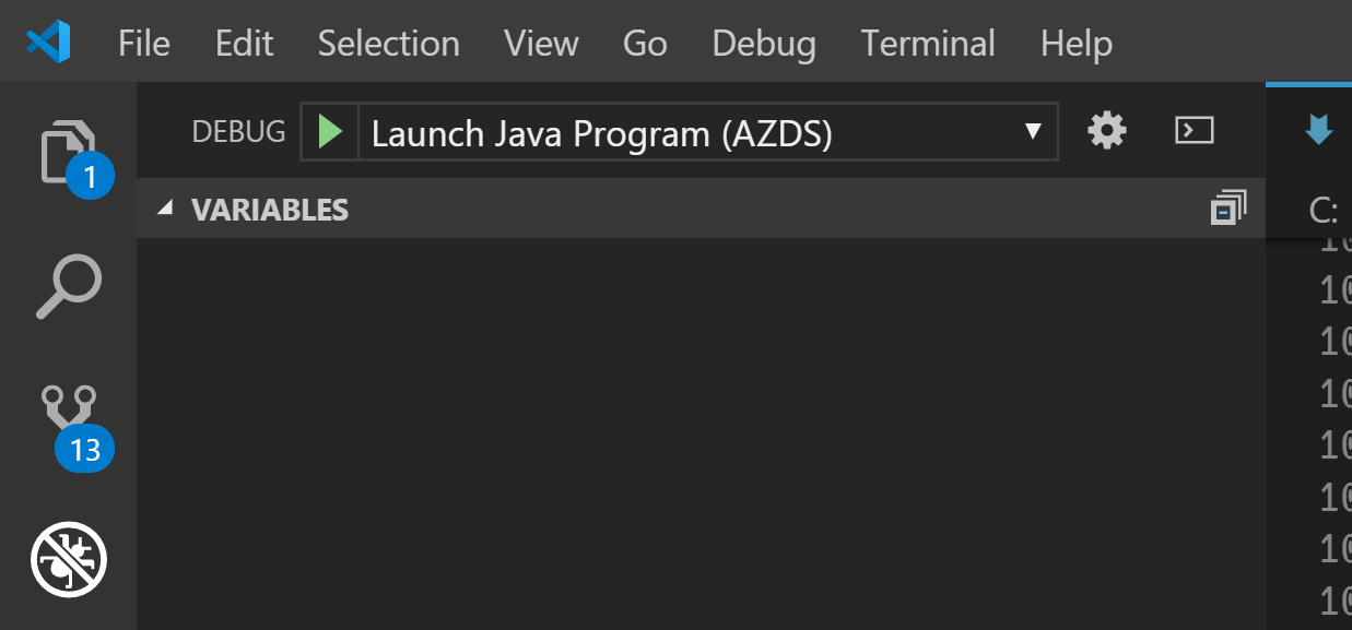 Nun können wir debuggen – klicke im Debugging-Menü auf Launch Java Program(AZDS)