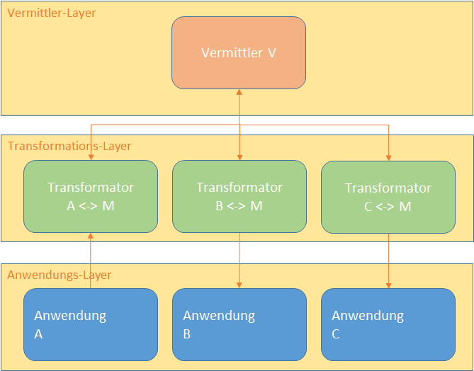 - Transformations-Layer (Übernimmt die Transformation zwischen dem fremden und dem gemeinsamen Datenmodell und Transportkanal)