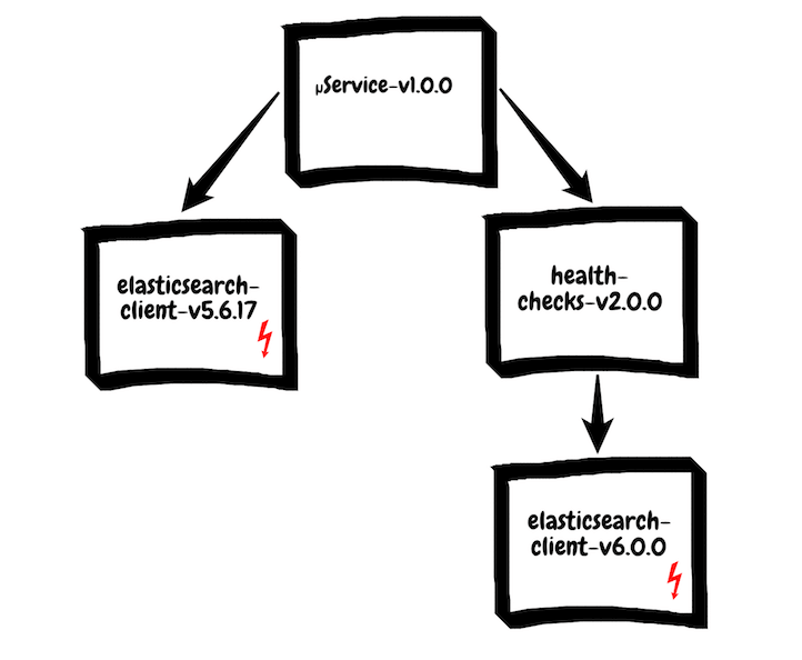 Services, die die neuen Health-Checks verwenden, nutzen in unserem konkreten Beispiel aber denselben Elasticsearch-Client auch im eigenen (fachlichen) Code, nur in einer älteren Version. In den betreffenden Services mussten also ähnliche Anpassungen erfolgen, dies erhöhte den Aufwand immens. In diesem Fall bieten sich zwei Lösungen an: