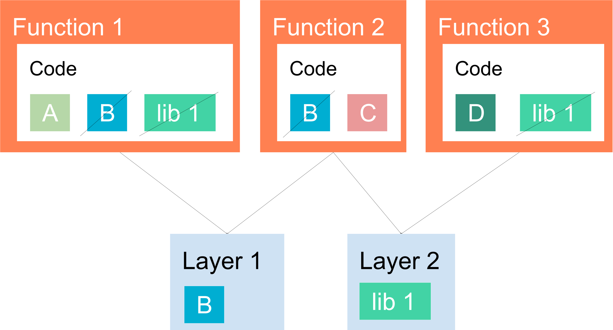 Mittels Lamdba Layers lassen sich diese Code-Teile auslagern und in verschiedenen Lambda-Funktionen verwenden.