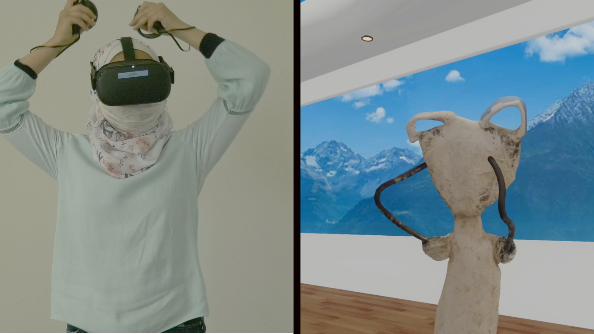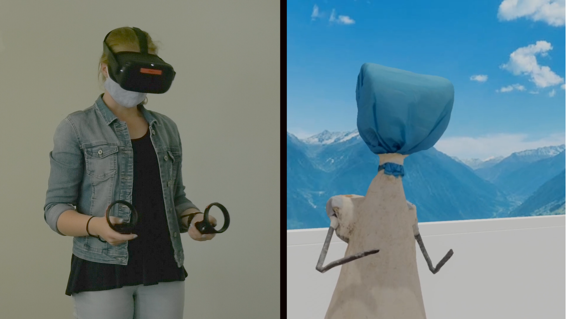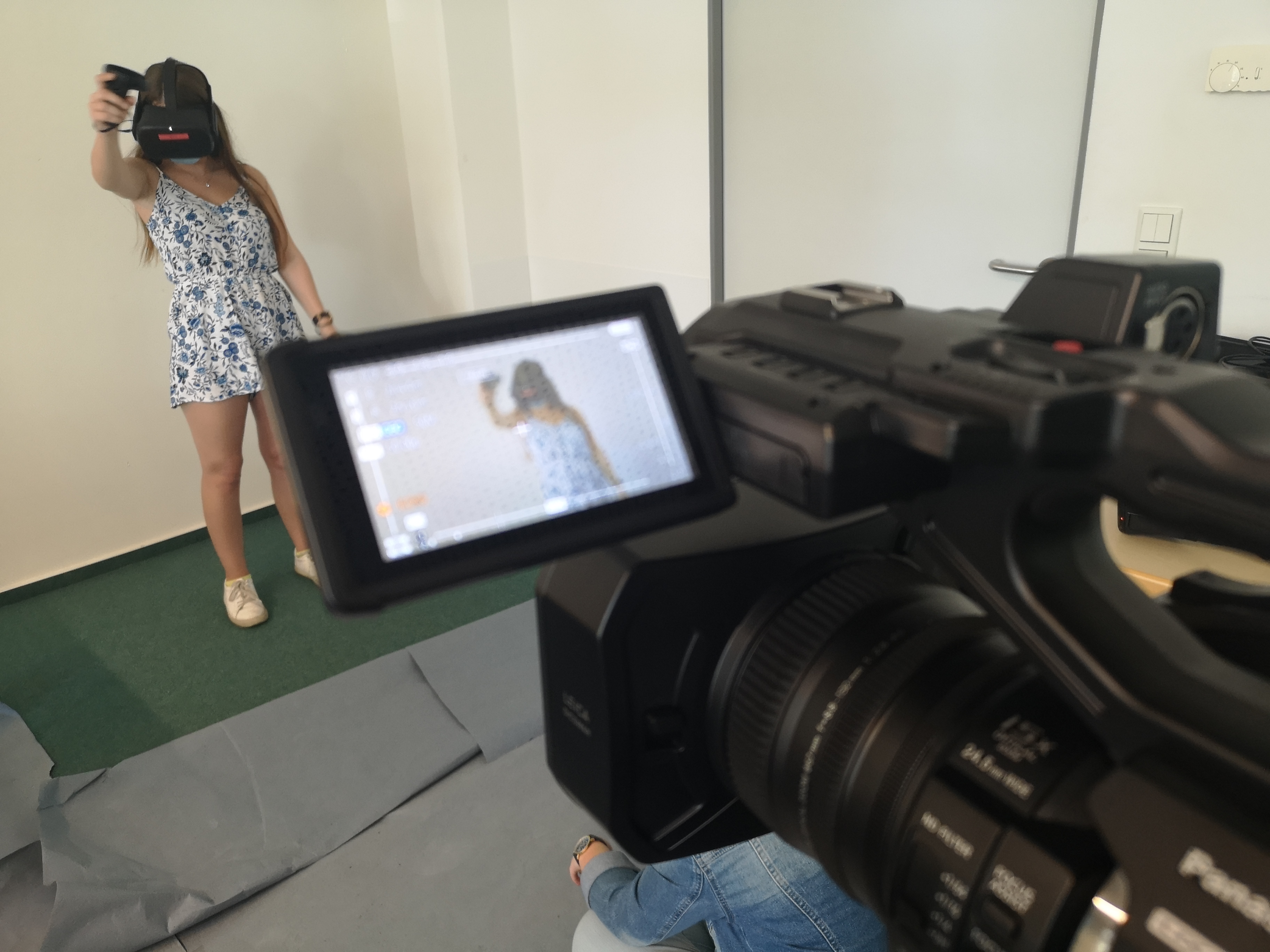 Mit professioneller Unterstützung wurden reale Video-Aufnahmen und Aufnahmen in der virtuellen Welt gemacht, damit diese dann am letzten Tag zu einem schönen Ergebnisfilm zusammengeschnitten werden konnten. Für die virtuellen Aufnahmen war immer ein zusätzlicher Teilnehmer in der VR-Szene, der die Bewegungen der Skulpturen im selben Moment erfasste wie die reale Kamera den „Puppenspieler“.