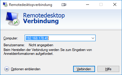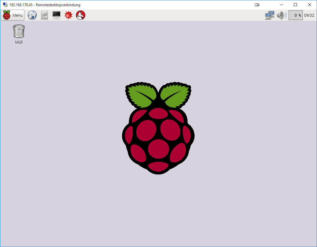 Nach einem Reboot können wir dann beispielsweise von Windows per RDP auf den Pi 2 zugreifen.
