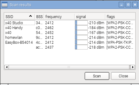 Wir klicken auf Scan, um die verfügbaren Netzwerke in Reichweite anzeigen zu lassen.