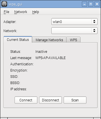 Um den Pi 2 in ein WLAN zu hängen, kann man sich über Remote Desktop verbinden und dann das Tool wpa_gui aufrufen. Denn wenn man mit dem Pi 2 unterwegs Fotos machen möchte, muss man vom Handy aus einen WLAN-Hotspot einrichten, zu dem sich der Pi 2 dann verbinden soll.